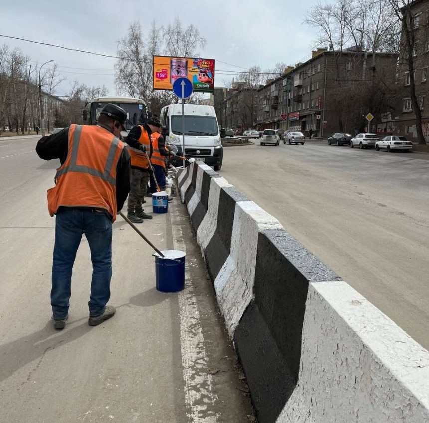 Дорожные ограждения красят в Иркутске