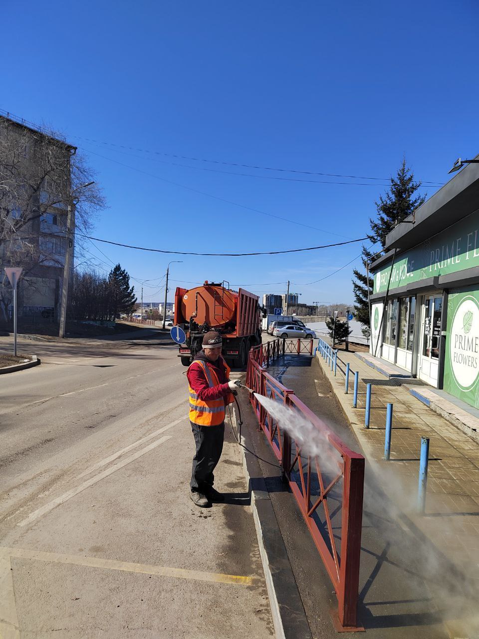 Продолжают мыть дорожные ограждения, разделительные волны, остановочные пункты. Уже завершили влажную уборку на нескольких улицах, в том числе на Сурнова, Трактовой, Джамбула, Полярной. Помимо водных процедур объекты ждёт покраска. Делать это будут при ясной тёплой погоде. Так, в ближайшее время планируют покрасить конструкции на Декабрьских Событий, Чкалова, Ленина, и не только. При этом ежедневно убирается мусор и прошлогодняя листва с тротуаров, пешеходных переходов, заездных карманов и газонов.