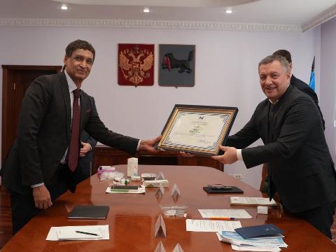 В завершение встречи Игорь Кобзев вручил Викраму Пунии Почетную грамоту Губернатора Иркутской области за многолетний труд и высокий профессионализм, успешное решение вопросов, социально значимых для жителей региона.