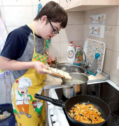 «Мне как-то довелось объяснять воспитаннику интерната – здоровому, активному подростку – принцип приготовления котлет. И в ответ на просьбу перевернуть на сковороде котлеты, мальчик просто взял пластиковую имитацию котлеты и перевернул её рукой, – рассказывает Галина Николаевна. – То есть взрослеющему человеку, который никогда наглядно не видел процесса приготовления еды (ему её приносят на стол в готовом виде), не пришло в голову, что в таком случае он обжёгся бы! Вот почему важно учить в реальных условиях, а не в теории и на макетах. У нас в тренировочной комнате занятия с несовершеннолетними и молодыми инвалидами проводят психологи и социальные педагоги – разработана специальная адаптивная программа, и подобное обучение даёт замечательные результаты. Здесь воспитанники узнают, как хранить продукты, заваривать чай, готовить и разогревать еду, проветривать комнату, проводить уборку, стирать и гладить вещи – учатся всему тому, что составляет наш повседневный быт. Также специалисты проводят и выездные занятия – учат ориентироваться на улице, составлять маршрут от магазина до автобусной остановки.