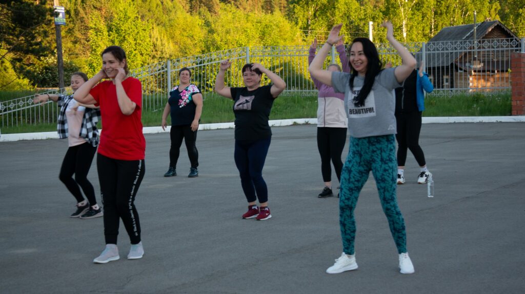Идею привлечь жителей к активному досугу предложила тренер Наталья Москвитина, задумку поддержали такие же коллеги-энтузиасты Марина Бакина и Елена Константинова. Раз в две недели на спортивной площадке у поселкового ФОКа наставники проводят вечерние занятия, включающие зумбу (танцевальную тренировку), силовую тренировку и пилатес. Взбодриться, укрепить своё тело, зарядиться отличным настроением на свежем воздухе под зажигательную музыку – согласитесь, заманчиво. Всё, что нужно: спортивная форма, сменная обувь (для тренировок в зале на случай дождя) и гимнастический коврик. Главное – отсутствие противопоказаний к физическим нагрузкам.